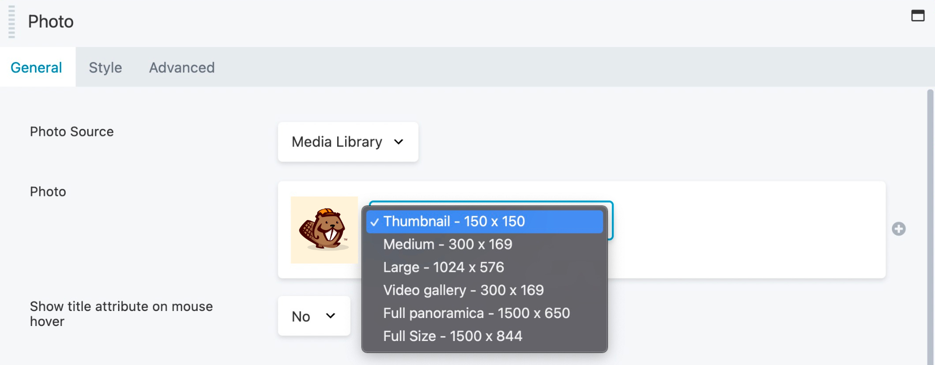 With the following code, you can create custom image size options that appear in the size selection box for anywhere in Beaver Builder that you can insert an image from the media library: row and column backgrounds, Photo module, Callout module, and so on.