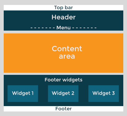 • The main footer, similar to the top bar in allowing one or two columns.