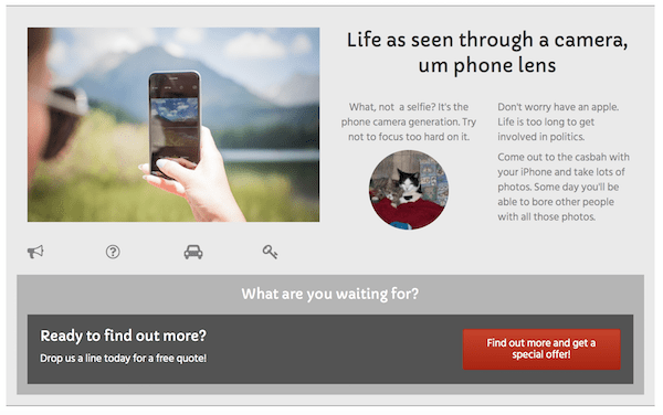 The Beaver Builder plugin is a front-end layout and style designer that gives you a WYSIWYG view of the content area as you develop it. Starting with one of the Beaver Builder layout templates or a blank page, you can easily modify and add content modules in complex arrangements of rows and columns, as shown in this example: