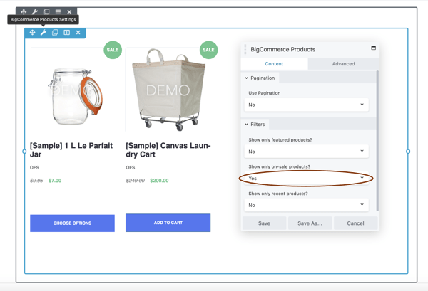 This module lets you add any of the following displays of products or subsets (as defined in your BigCommerce database):